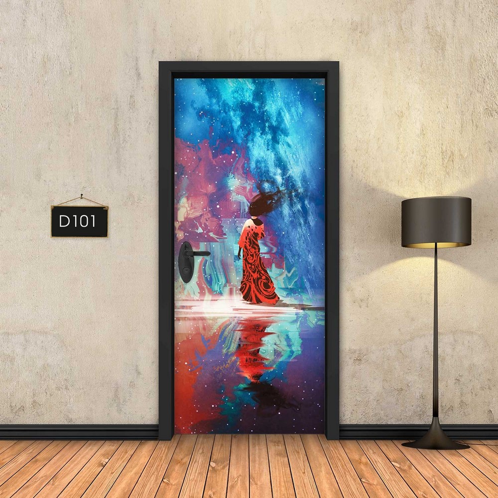 טפט לדלת בעיצוב חלל צבעוני D101 בסגנון ילדים ונוער, תמונות וצילומים