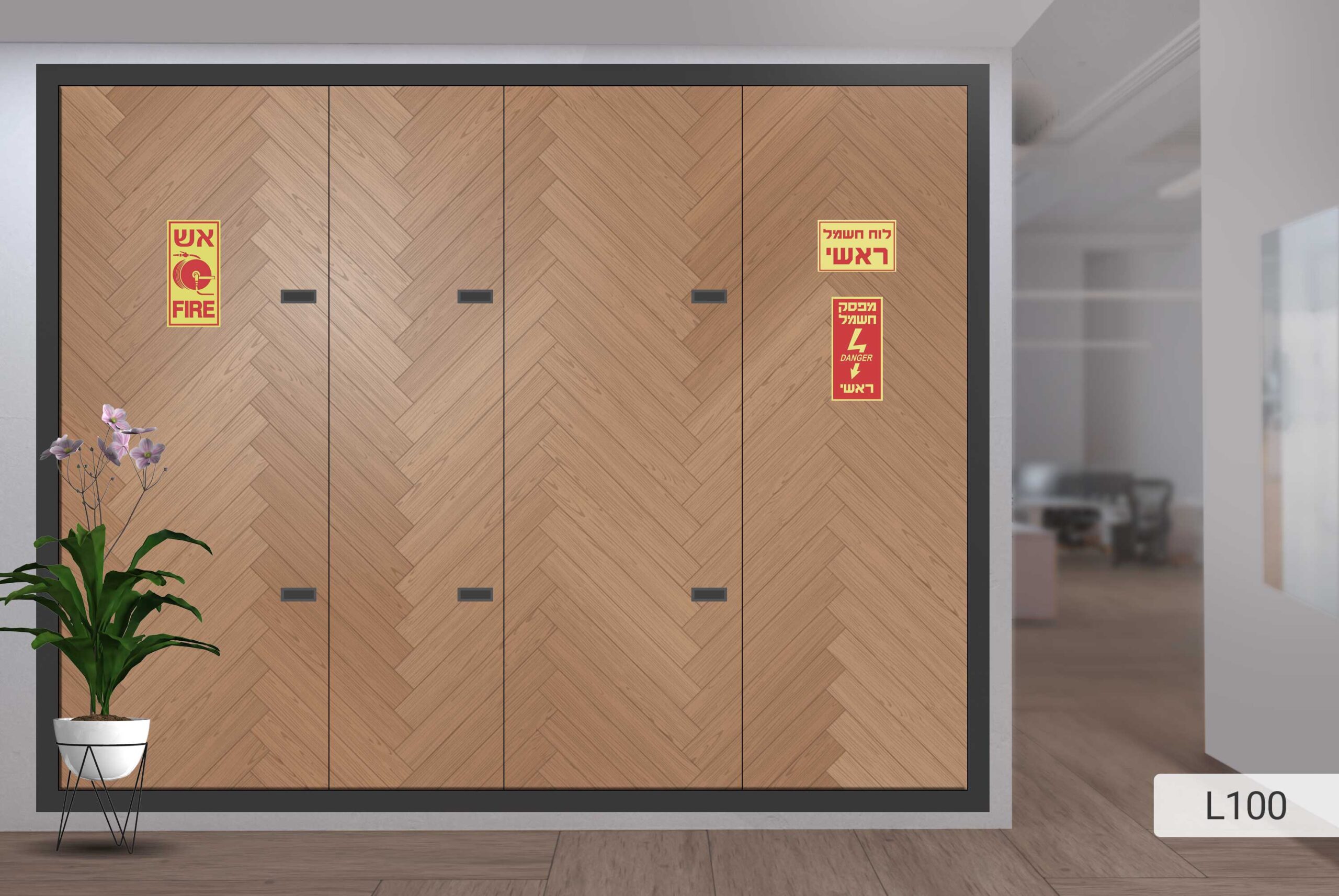 טפט לעיצוב ארון חשמל L100 בצבעי חום, עץ בסגנון עץ ופרקט, פישבון