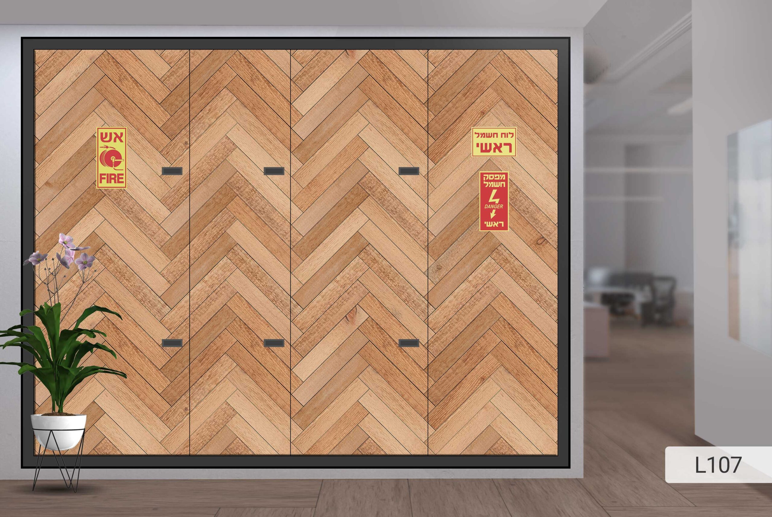 טפט לעיצוב ארון חשמל L107 בצבעי חום, עץ בסגנון עץ ופרקט, פישבון